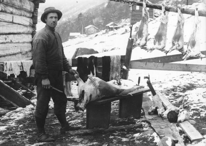 Slakting på søre Grøvo. Asle Bøkko. (Frå Anna Bøkko)